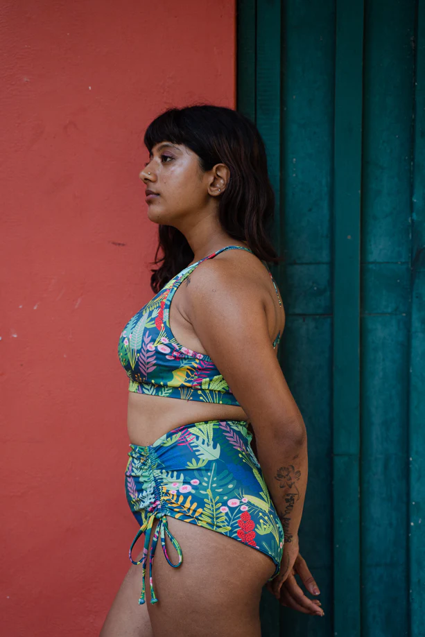 This fabulous swim set features our signature jungle pattern printed on the softest and premium recycled Econyl nylon. The functional and stylish tank top features a raised neckline, thick bottom band and underwire for a higher level of support and seamless comfort.